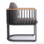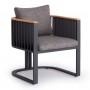 Σας παρουσιάζουμε μια καταπληκτική πολυθρόνα τραπεζαρίας εξωτερικού χώρου της σειράς ETERNITY. Μια σειρά που, μαζί με άλλες, ανεβάζει τον πήχη της ποιότητας και της αισθητικής που προσφέρουμε σε εσάς, τόσο για το σπίτι, όσο και για κάθε ανάλογο επαγγελματικό χώρο! Με απαράμιλλη ποιότητα κατασκευής και υλικών, θα αναβαθμίσει την εικόνα σε όποιο χώρο επιθυμείτε. Ο σκελετός είναι από αλουμίνιο σε ΑΝΘΡΑΚΙ χρώμα και τα μαξιλάρια είναι σε χρώμα ΑΝΟΙΧΤΟ ΓΚΡΙ. Η επένδυση στα μπράτσα με ξύλο teak είναι άλλη μία πινελιά πολυτέλειας σε αυτή την μοναδική πολυθρόνα, η οποία ξεχωρίζει και για τον όμορφο σχεδιασμό της βάσης της.