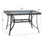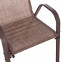 Αυτό το Σετ τραπεζαρίας εξωτερικού χώρου διαθέτει ορθογώνιο τραπέζι με ΚΑΦΕ μεταλλικό σκελετό και γυάλινη θολή ΕΝΙΣΧΥΜΕΝΗ επιφάνεια με τρύπα για ομπρέλα, και 4 ΚΑΦΕ μεταλλικές στοιβαζόμενες πολυθρόνες με κάθισμα & πλάτη από ύφασμα textilene (2x1—540g) σε ΚΑΦΕ χρώμα.