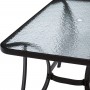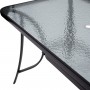 Αυτό το Σετ τραπεζαρίας εξωτερικού χώρου διαθέτει ορθογώνιο τραπέζι με ΚΑΦΕ μεταλλικό σκελετό και γυάλινη θολή ΕΝΙΣΧΥΜΕΝΗ επιφάνεια με τρύπα για ομπρέλα, και 4 ΚΑΦΕ μεταλλικές στοιβαζόμενες πολυθρόνες με κάθισμα & πλάτη από ύφασμα textilene (2x1—540g) σε ΚΑΦΕ χρώμα.