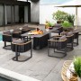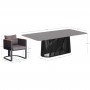 Σας παρουσιάζουμε ένα εντυπωσιακό σετ τραπεζαρίας εξωτερικού χώρου της σειράς ETERNITY σε ΣΚΟΥΡΟ ΓΚΡΙ (ανθρακί) χρώμα. Η σειρά ETERNITY, μαζί με τις άλλες νέες σειρές του SYMETRON, ανεβάζει τον πήχη της ποιότητας και της αισθητικής που προσφέρουμε σε εσάς, τόσο για το σπίτι, όσο και για κάθε ανάλογο επαγγελματικό χώρο! Με απαράμιλλη ποιότητα κατασκευής και υλικών, θα αναβαθμίσει την εικόνα σε όποιο χώρο επιθυμείτε. Το σετ αποτελείται από ένα μεγάλο ορθογώνιο τραπέζι με βάση αλουμινίου και επιφάνεια από SINTERED STONE σε χρωματισμό σκούρου γκρι μαρμάρου, και 8 πολυθρόνες παρόμοιας αισθητικής με μαξιλάρια καθίσματος και πλάτης, με μια «πινελιά» ξύλου teak στα μπράτσα!