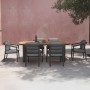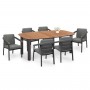 Αυτό το σετ τραπεζαρίας για κάθε εξωτερικό χώρο αποτελείται από ένα ορθογώνιο τραπέζι και 6 πολυθρόνες της σειράς EUTOPIA. Το τραπέζι έχει ελαφρώς κυρτές πλευρές με σκελετό αλουμινίου σε ΣΚΟΥΡΗ ΓΚΡΙ απόχρωση και επιφάνεια από ξύλο teak σε ΦΥΣΙΚΟ χρώμα. Οι πολυθρόνες διαθέτουν μαξιλάρια από ύφασμα olefin κατάλληλο για εξωτερικούς χώρους. Η σειρά EUTOPIA ήρθε για να φέρει στο προσκήνιο την ασύγκριτη ποιότητα υλικών σε συνδυασμό με την όμορφη αισθητική.