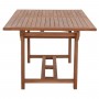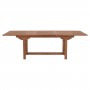 Ανοιγόμενο τραπέζι τραπεζαρίας εξωτερικού χώρου CRANDER, κατασκευασμένο από μασίφ ξύλο teak υψηλής αντοχής. Διαθέτει πρόσθετο κομμάτι στο κέντρο που επιτρέπει την επέκταση του μήκους, προσαρμόζοντας το εύκολα στις ανάγκες φιλοξενίας περισσότερων ατόμων. Το teak προσφέρει φυσική αντοχή στις καιρικές συνθήκες, καθιστώντας το ιδανικό για εξωτερική χρήση με διαχρονική αισθητική.