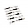 Με μοντέρνο σχεδιασμό και μαύρες resin λαβές, το ROYAL σετ πιρουνιών γλυκού αποπνέει καθαρή αισθητική και premium χαρακτήρα. Το ατσάλι προσφέρει σταθερότητα και αντοχή, ενώ η μινιμαλιστική γραμμή το κάνει ιδανικό για καθημερινή χρήση ή refined σερβίρισμα. Ένα διακριτικό αλλά κομψό στοιχείο σε κάθε σύγχρονο τραπέζι. ΠΛΥΣΙΜΟ ΣΤΟ ΧΕΡΙ MONO