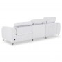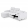 Τα προσκέφαλα και στις τρεις θέσεις διαθέτουν ρυθμιζόμενη ανάκλιση με εύχρηστο χειροκίνητο μηχανισμό, επιτρέποντας την προσαρμογή της θέσης στήριξης σύμφωνα με τις ανάγκες κάθε στιγμής. Παράλληλα, η θέση που βρίσκεται δίπλα στο μπράτσο —και όχι στη γωνία— διαθέτει πλήρη ηλεκτρική ανάκλιση, μετατρέποντας το κάθισμα σε μια πραγματική ζώνη χαλάρωσης με το πάτημα ενός κουμπιού. Οι διακόπτες ελέγχου βρίσκονται διακριτικά τοποθετημένοι στην εσωτερική πλευρά του μπράτσου για εύκολη και άμεση πρόσβαση. Στο ίδιο σημείο υπάρχει και θύρα USB, προσφέροντας τη δυνατότητα φόρτισης συσκευών και ενισχύοντας την πρακτικότητα του καναπέ στην καθημερινότητα.