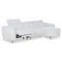 Τα προσκέφαλα και στις τρεις θέσεις διαθέτουν ρυθμιζόμενη ανάκλιση με εύχρηστο χειροκίνητο μηχανισμό, επιτρέποντας την προσαρμογή της θέσης στήριξης σύμφωνα με τις ανάγκες κάθε στιγμής. Παράλληλα, η θέση που βρίσκεται δίπλα στο μπράτσο —και όχι στη γωνία— διαθέτει πλήρη ηλεκτρική ανάκλιση, μετατρέποντας το κάθισμα σε μια πραγματική ζώνη χαλάρωσης με το πάτημα ενός κουμπιού. Οι διακόπτες ελέγχου βρίσκονται διακριτικά τοποθετημένοι στην εσωτερική πλευρά του μπράτσου για εύκολη και άμεση πρόσβαση. Στο ίδιο σημείο υπάρχει και θύρα USB, προσφέροντας τη δυνατότητα φόρτισης συσκευών και ενισχύοντας την πρακτικότητα του καναπέ στην καθημερινότητα.