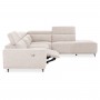 Η θέση που βρίσκεται δίπλα στο μπράτσο —και όχι στη γωνία— διαθέτει ηλεκτρική ανάκλιση που ενεργοποιείται εύκολα μέσω διακοπτών στην εξωτερική πλευρά του μπράτσου, μετατρέποντας το κάθισμα σε μια πραγματική ζώνη χαλάρωσης.