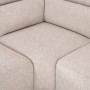 Ο καναπές αποτελείται από τέσσερα ανεξάρτητα τμήματα τα οποία ενώνονται μεταξύ τους με κατακόρυφους αναρτήρες τύπου panel, εξασφαλίζοντας στιβαρότητα, σταθερότητα και άψογη εφαρμογή. Η επένδυση με ποιοτικό ανάγλυφο ύφασμα σε φωτεινή ΕΚΡΟΥ απόχρωση χαρίζει κομψότητα και διαχρονικό χαρακτήρα, ενώ η υφή του προσθέτει βάθος και πολυτελή αίσθηση στον χώρο.