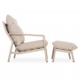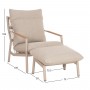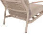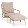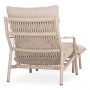 Ο σκελετός τόσο στην πολυθρόνα όσο και στο υποπόδιο είναι από αλουμίνιο σε ΜΠΕΖ χρώμα με σχοινί στην πλάτη της πολυθρόνας σε παρόμοιο χρώμα, όπως και στα μαξιλάρια. Το ξύλο teak ως επένδυση στα μπράτσα της πολυθρόνας είναι η «πινελιά» πολυτέλειας στο σετ!