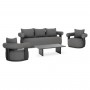 Η SYMETRON παρουσιάζει την σειρά επίπλων εξωτερικού χώρου DECCARD. Μια σειρά που ακολουθεί πιστά τις αρχές που διέπουν την SYMETRON τόσο στην ποιότητα όσο και στην αισθητική τελειότητα των προϊόντων που προσφέρει. Αυτό το σετ 5 θέσεων αποτελείται από έναν 3-θέσιο καναπέ, 2 περιστρεφόμενες πολυθρόνες και ένα τραπεζάκι, όλα της ίδιας σειράς με σκελετό από αλουμίνιο σε ΣΚΟΥΡΟ ΓΚΡΙ χρώμα.