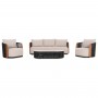 Η σειρά AUGUSTUS, όπως και οι υπόλοιπες της SYMETRON, συνδυάζει την απαράμιλλη ποιότητα των υλικών της και του φινιρίσματός της, αλλάζοντας τα δεδομένα στην κατηγορία. Αυτό το σετ 4τμχ και 5 θέσεων αποτελείται από έναν τριθέσιο καναπέ, 2 πολυθρόνες και ένα οβάλ τραπεζάκι με ΜΠΕΖ επιφάνεια από sintered stone. Ο καναπές και οι πολυθρόνες έχουν σκούρο ΓΚΡΙ σκελετό αλουμινίου και σχοινί ενώ τα μαξιλάρια της πλάτης αλλά και στα καθίσματα έχουν επένδυση από OLEFIN ύφασμα σε ΜΠΕΖ χρώμα. Το ξύλο teak στο κάθετο τμήμα των μπράτσων είναι μια επιπλέον πινελιά πολυτέλειας σε όλο το σετ.