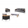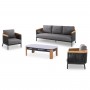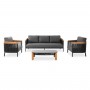 Σας παρουσιάζουμε το εξαιρετικό σετ σαλόνι 4τμχ εξωτερικού χώρου της σειράς ETHEREAL. Μια σειρά που, μαζί με άλλες, ανεβάζει τον πήχη της ποιότητας και της αισθητικής που προσφέρουμε σε εσάς, τόσο για το σπίτι, όσο και για κάθε ανάλογο επαγγελματικό χώρο! Με απαράμιλλη ποιότητα κατασκευής και υλικών, θα αναβαθμίσει την εικόνα σε όποιο χώρο επιθυμείτε. Αποτελείται από 3-θέσιο καναπέ, 2 πολυθρόνες και ένα τραπεζάκι. Ο σκελετός είναι από αλουμίνιο σε ΑΝΘΡΑΚΙ χρώμα με μαξιλάρια σε ίδιο χρώμα. Οι λεπτομέρειες με ξύλο teak και σχοινί είναι άλλη μία πινελιά πολυτέλειας σε όλο το σετ, ενώ το top στο τραπεζάκι από sintered stone σε πιο ανοιχτό γκρι απογειώνει ποιοτικά όλη την σύνθεση!