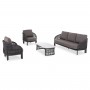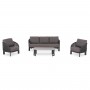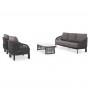 Η SYMETRON παρουσιάζει ένα ακόμα καινούργιο σετ σαλόνι εξωτερικού χώρου από την σειρά LADRIS. Αποτελείται από 2 πολυθρόνες με αναπαυτικά μαξιλάρια καθίσματος και πλάτης, έναν τριθέσιο καναπέ ίδιας αισθητικής φυσικά, κι ένα τραπεζάκι μέσης με επιφάνεια από sintered stone σε ΓΚΡΙ χρώμα. Το χρώμα του σκελετού είναι ΑΝΘΡΑΚΙ, όπως και το σχοινί, ενώ τα καλύμματα των μαξιλαριών είναι σε ΓΚΡΙ απόχρωση.